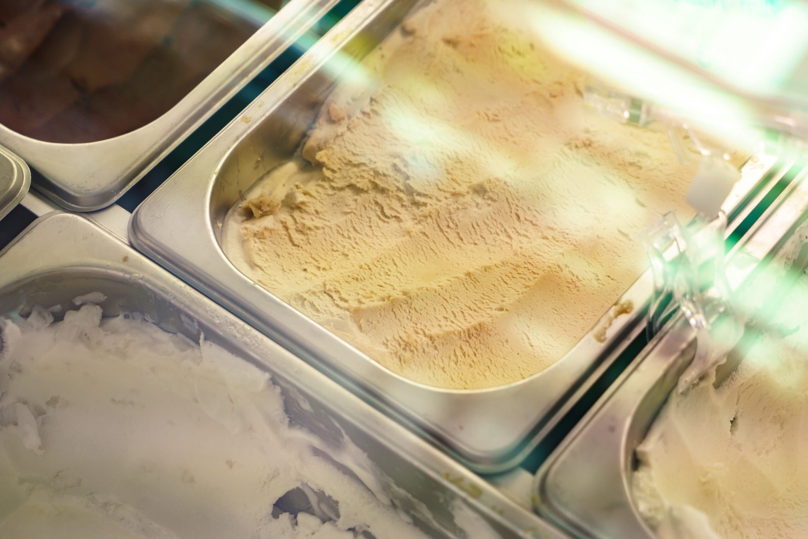 The mixture is frozen while churning in ice cream machines to create soft, fluffy ice cream.